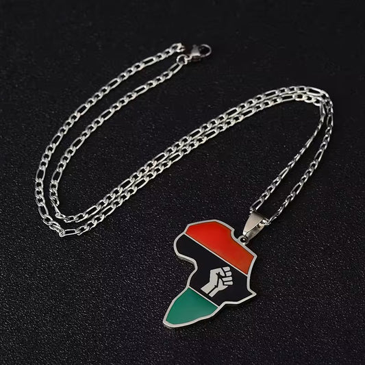 African Map and Fist Unisex Pendant Necklace