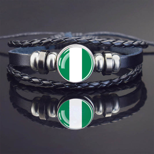 Black Braided Unisex Leather Country Flag Bracelet